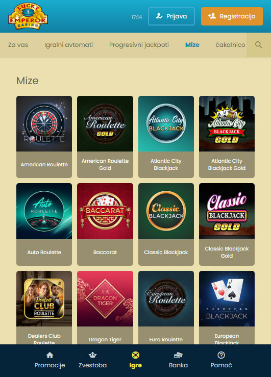 Pravzaprav lahko igralci igralnice Lucky Emperor Casino uporabljajo samo to mobilno spletno mesto za igranje iger na poti. Popolnoma je enak namizni spletni strani.